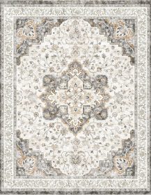 Marsail 8×10 Machine Washable Area Rug, Soft & Slip-Resistant Large Area Rug with Reinforced Bound Edges, Vintage Short-Pile Washable Rug with Floral Pattern for Living Room, Dinning Room and Bedroom