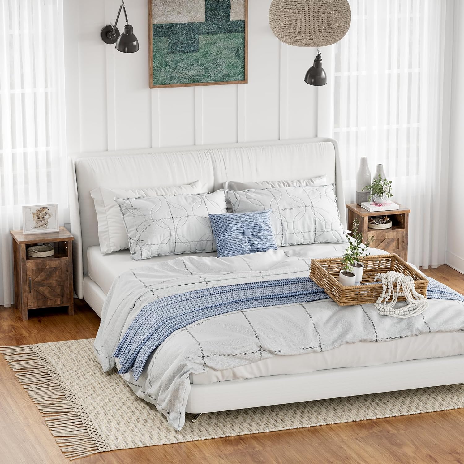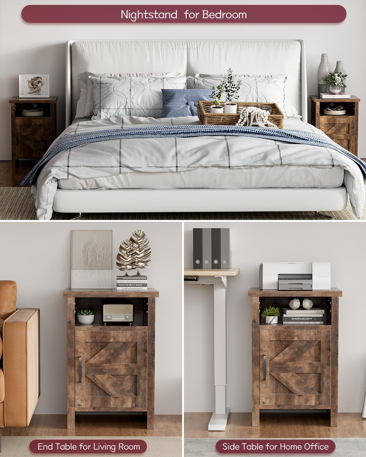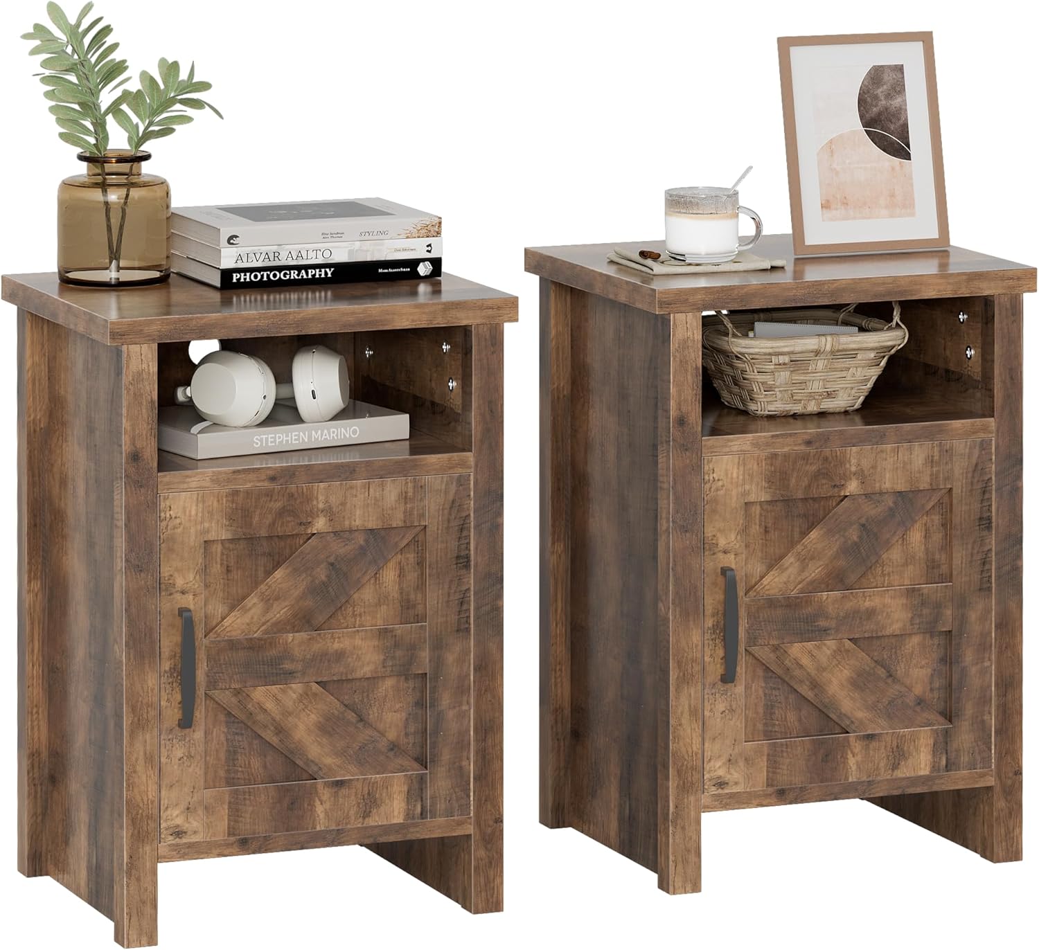 Constructed with high-quality materials, these nightstands are built to last. The addition of a storage shelf and barn door adds both charm and functionality to the pieces, providing ample storage space for your nighttime essentials.